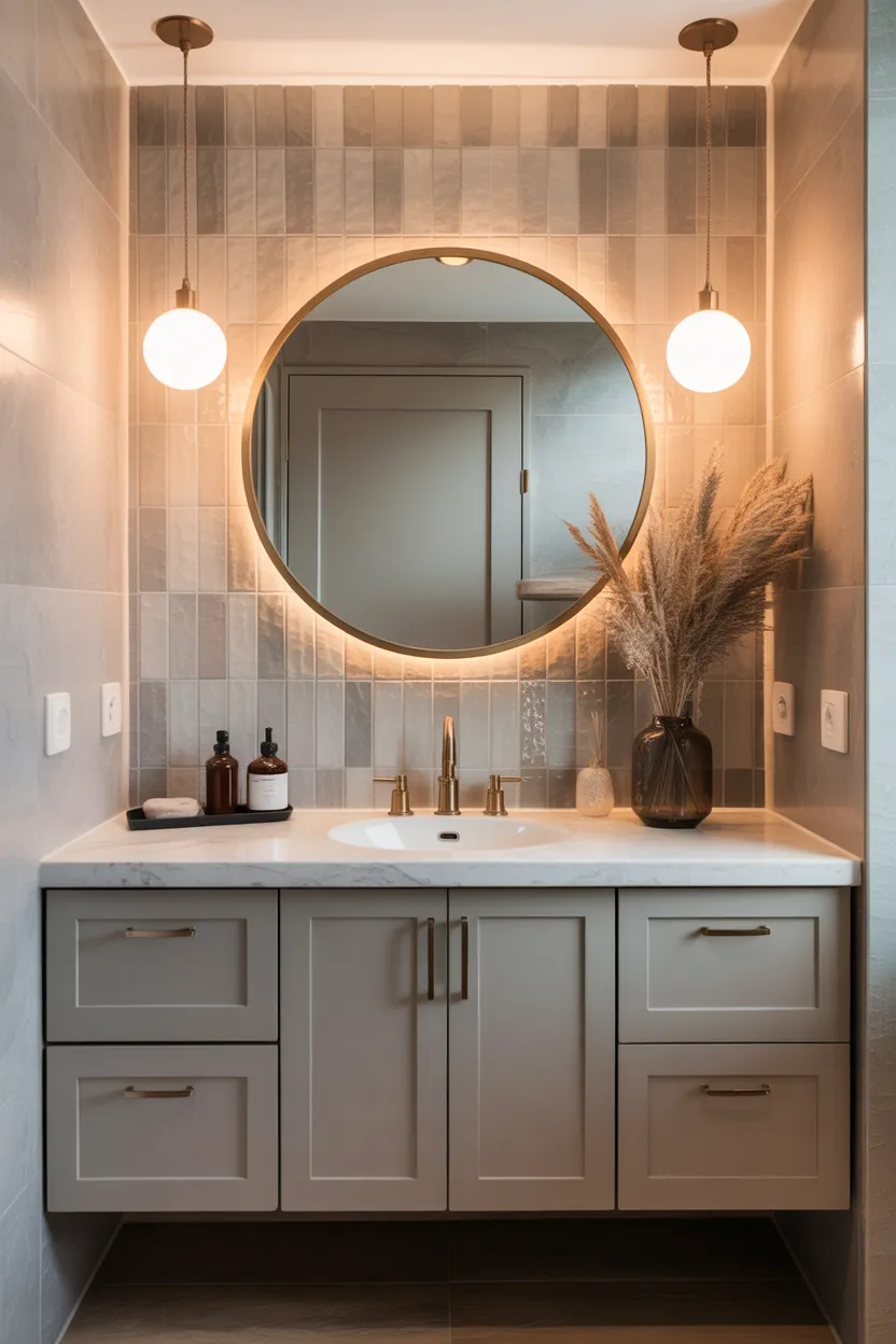 A standard mirror works, but a statement mirror adds style. It turns the vanity area into something memorable instead of just functional. Shape, frame, and finish all matter here, and each one can shift the feel of the room.