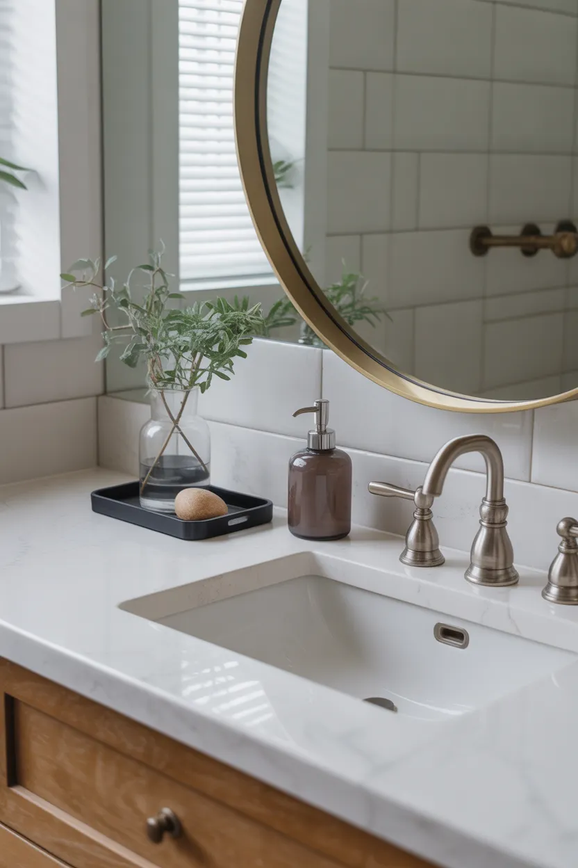 Try to match the faucet finish with your hardware or lighting when possible. That consistency helps the room feel more coordinated and complete.