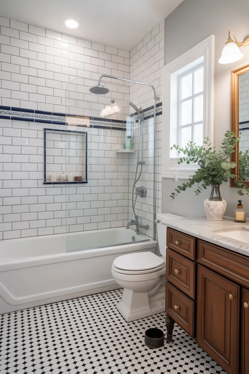 This idea works especially well if your vanity wall feels plain. A nice tile detail adds texture, pattern, and visual interest in a targeted way. That means you get more style without having to redo the entire room.