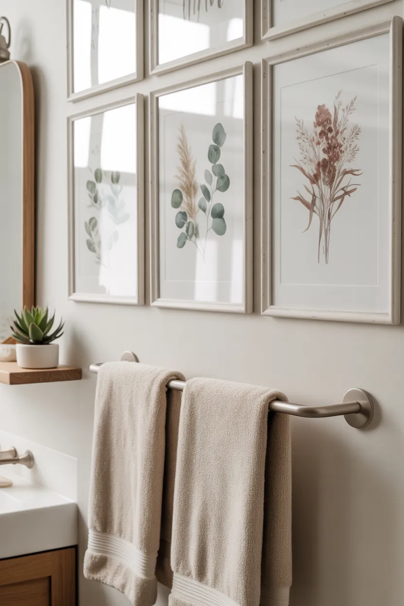 Choose art that supports the mood you want. If the bathroom should feel calm, go for softer imagery or muted tones. Wall art helps finish the room and gives it personality, which makes the whole space feel more complete.