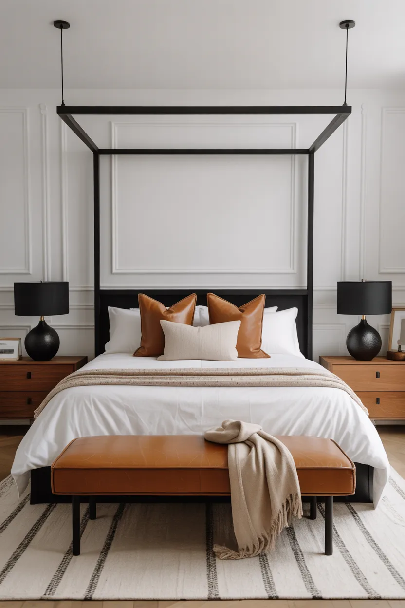 - Brass or matte black lamps for contrast