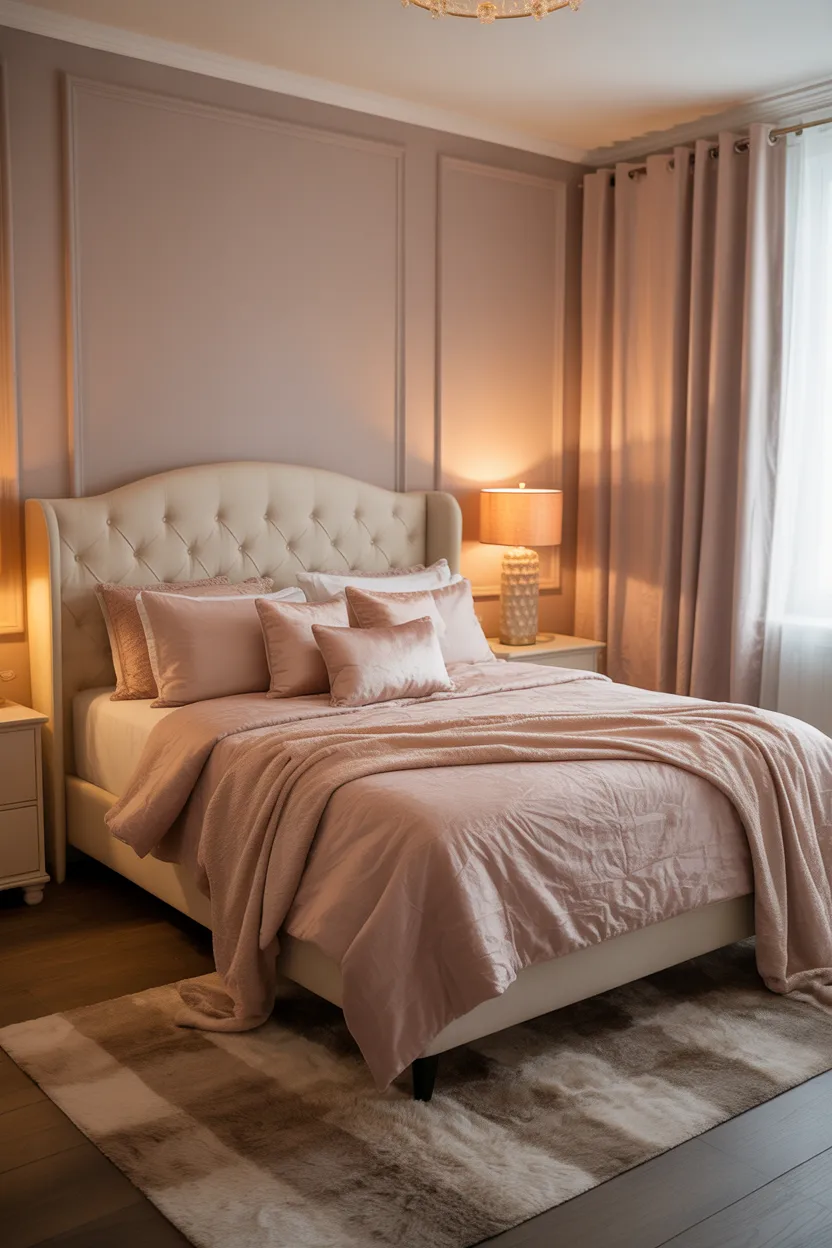 4. Blush Pink and Taupe for a Soft Romantic Bedroom