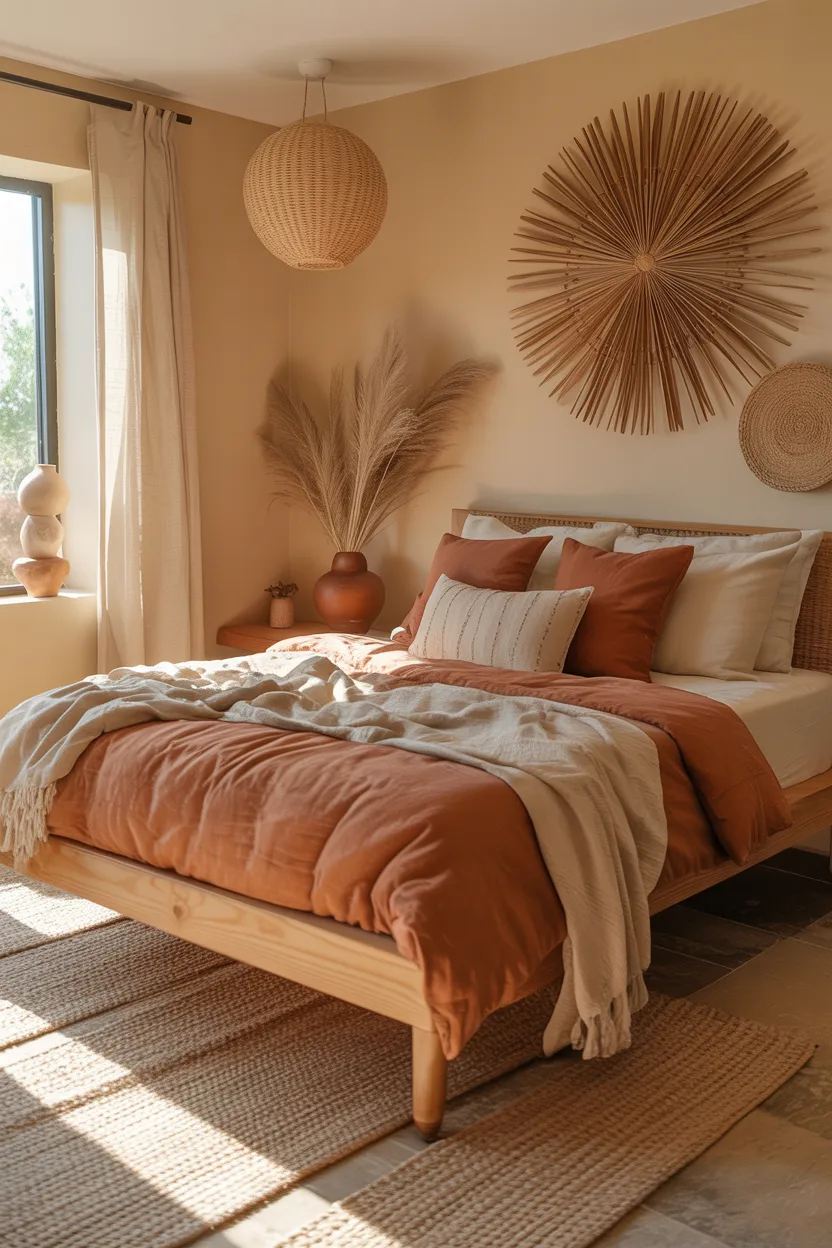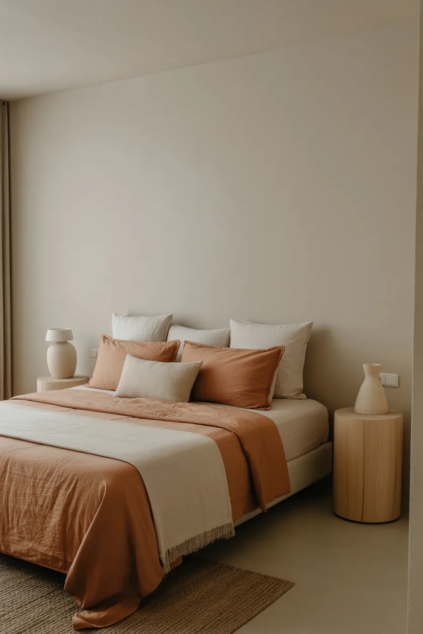 - Cream walls with terracotta bedding