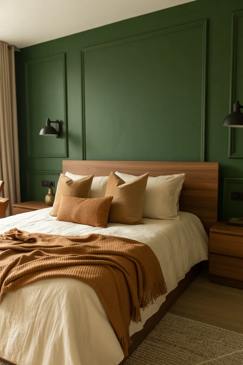 If you want a bedroom that feels confident and a little different, olive green and black make a strong choice.