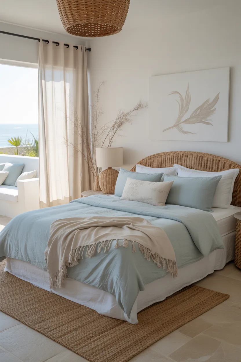 I think this combo looks especially nice in rooms with medium natural light. It feels cool and soothing during the day, then cozy and restful at night when you add warm bedside lighting. That kind of flexibility makes it really practical.