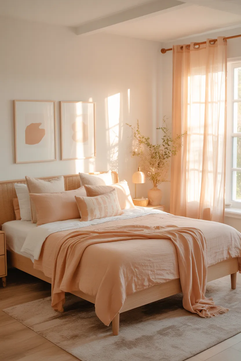 This color combo looks especially good in rooms with natural light. The warm tones glow beautifully during the day and feel extra cozy at night. It creates the kind of room that actually makes you want to get into bed early for once.