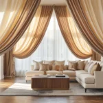 - Taupe curtains to ground the room