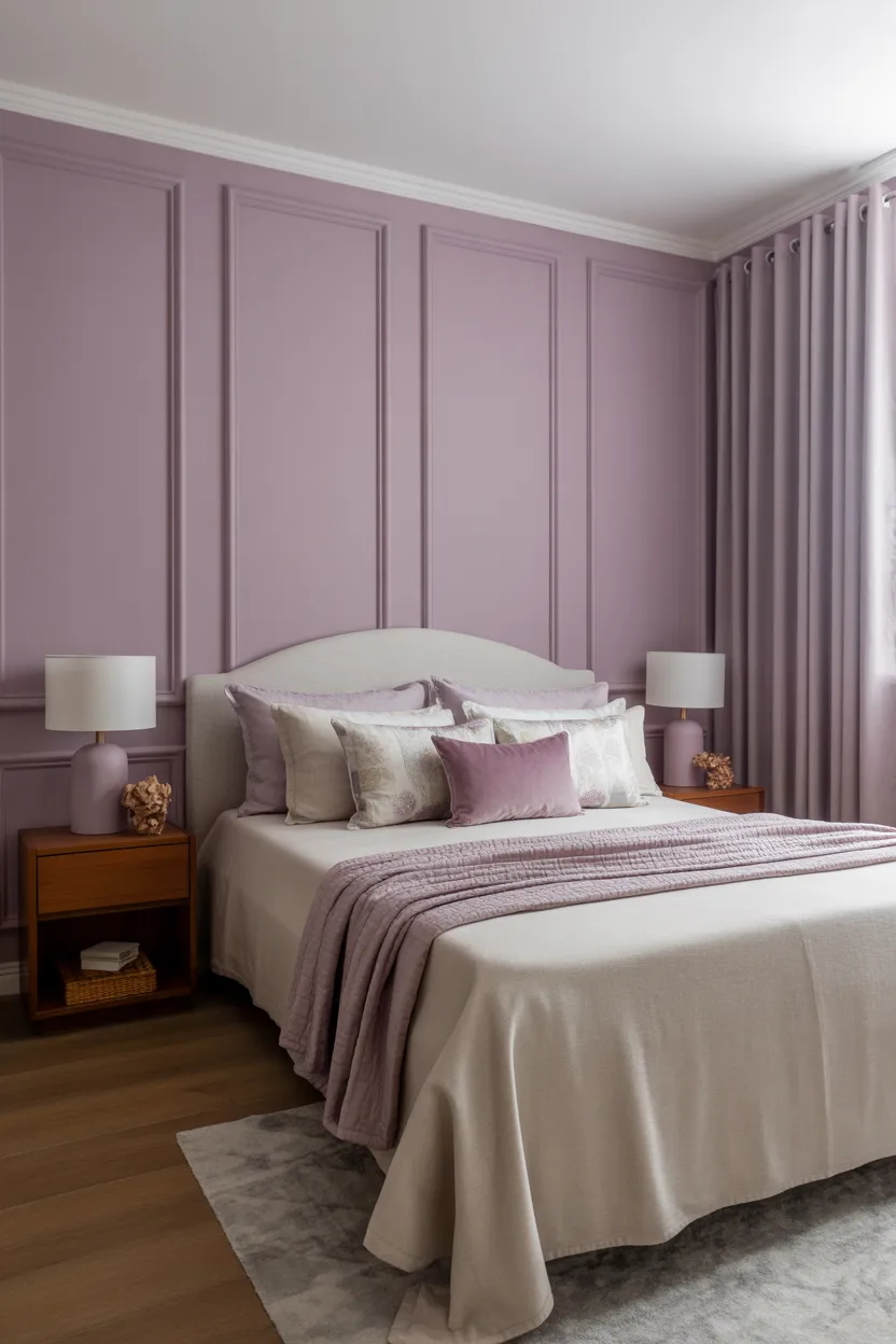Dusty lilac gives you a little more depth than pale lavender, but it still feels light enough for a small room. It has that muted elegance that can make a compact bedroom feel thoughtful and stylish without losing its airy quality.