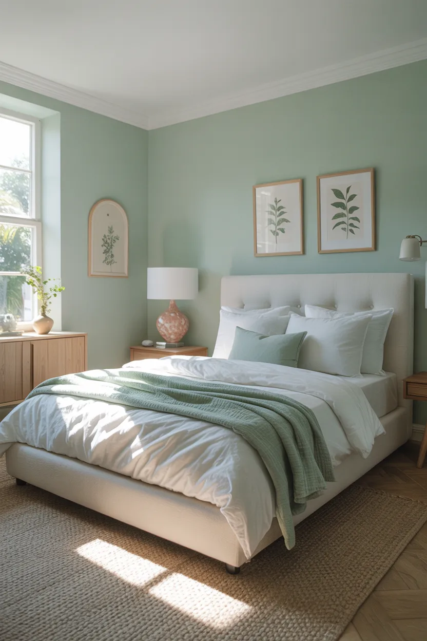 This shade works especially well in rooms with good natural light. It looks fresh in the morning and restful in the evening, which makes it ideal for a bedroom. It also pairs easily with white bedding, pale wood, and soft neutral accessories.