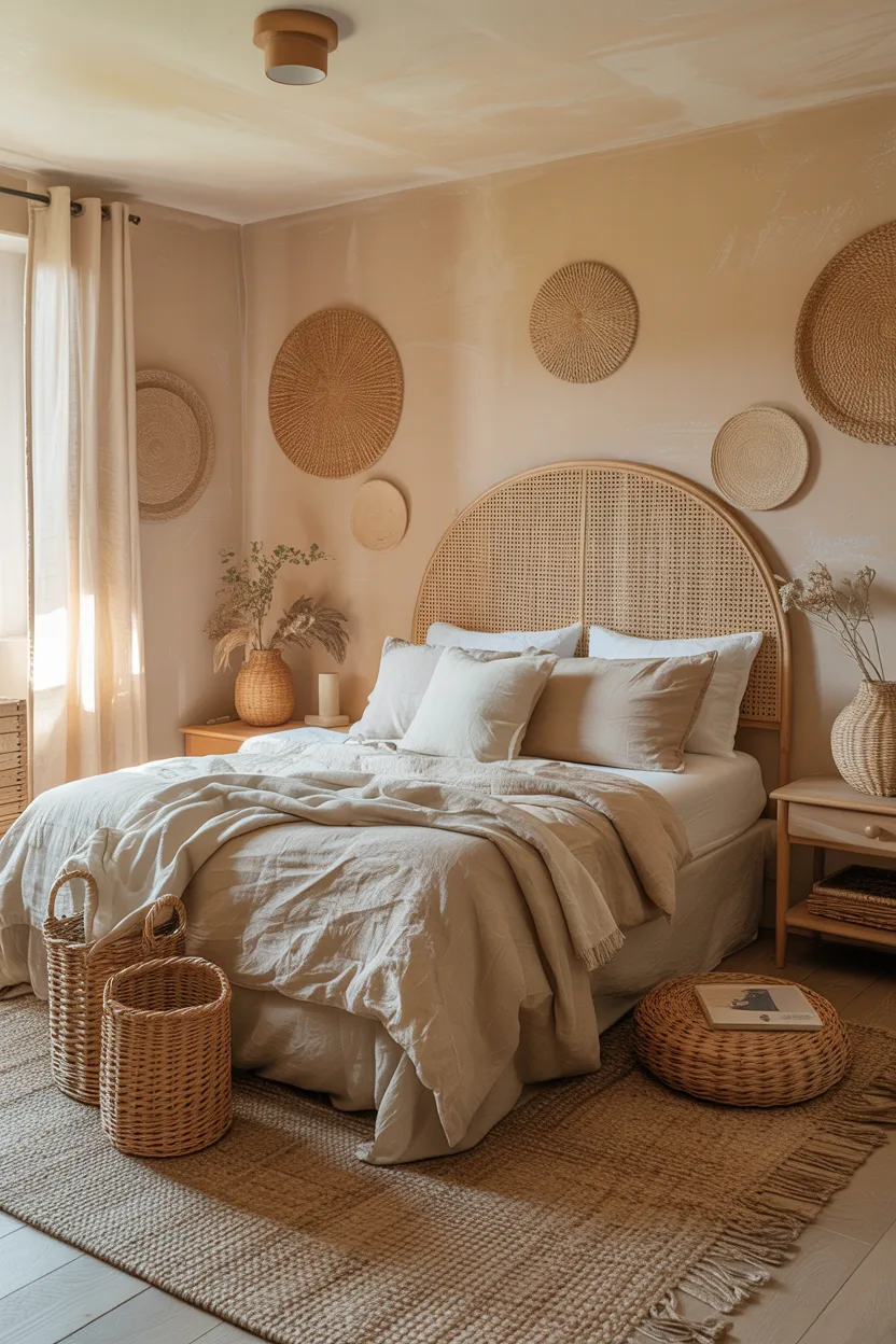 This color works really well if you love natural decor. Think linen bedding, woven textures, pale wood, and soft neutral layers. In a small bedroom, soft sand can create a calm backdrop that still keeps the room bright and open.