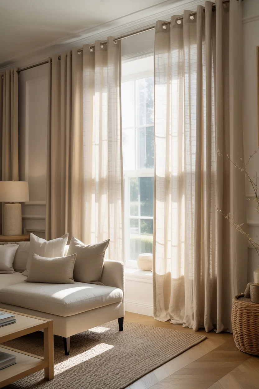 You do need to think about privacy. If your neighbors can see everything, sheer panels alone may not be enough. In that case, pair them with a second layer of linen or heavier drapes. That way, you keep the softness without giving the whole street a free tour of your living room.
