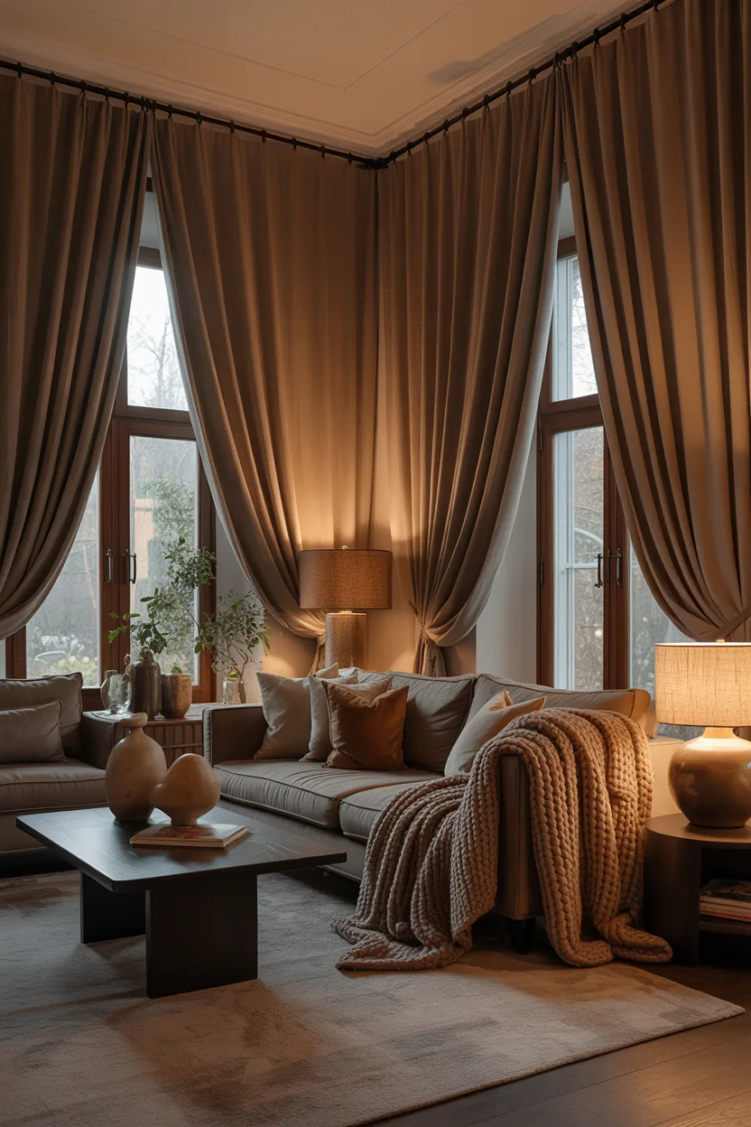 9. Earth Tone Curtains for Warmth and Comfort