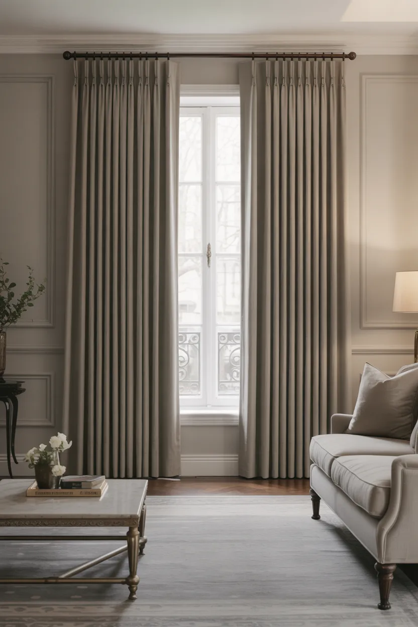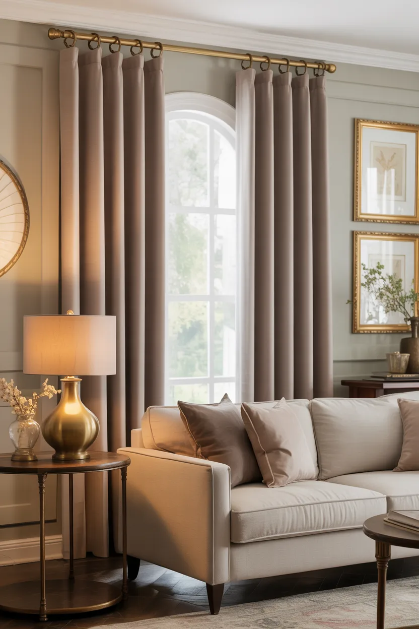 Taupe curtains already look elegant on their own, but when you pair them with gold or brushed brass hardware, the whole setup feels elevated. It is a subtle detail, but subtle details often make a room look the most expensive.