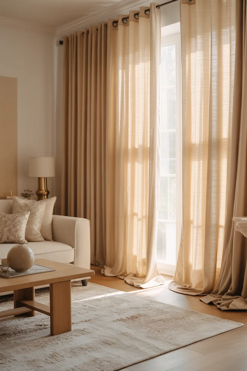 This combination sounds simple, but simple can look incredibly expensive when you do it right. Soft beige curtains against warm white walls create a layered neutral look that feels calm, polished, and very cozy.