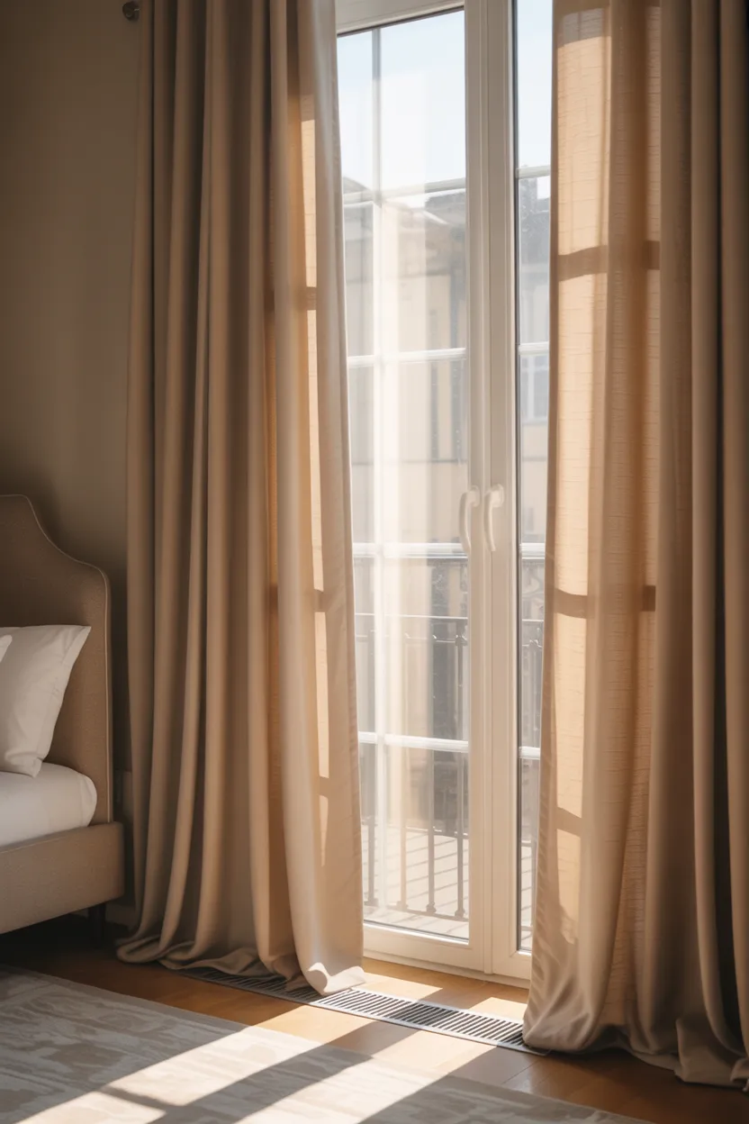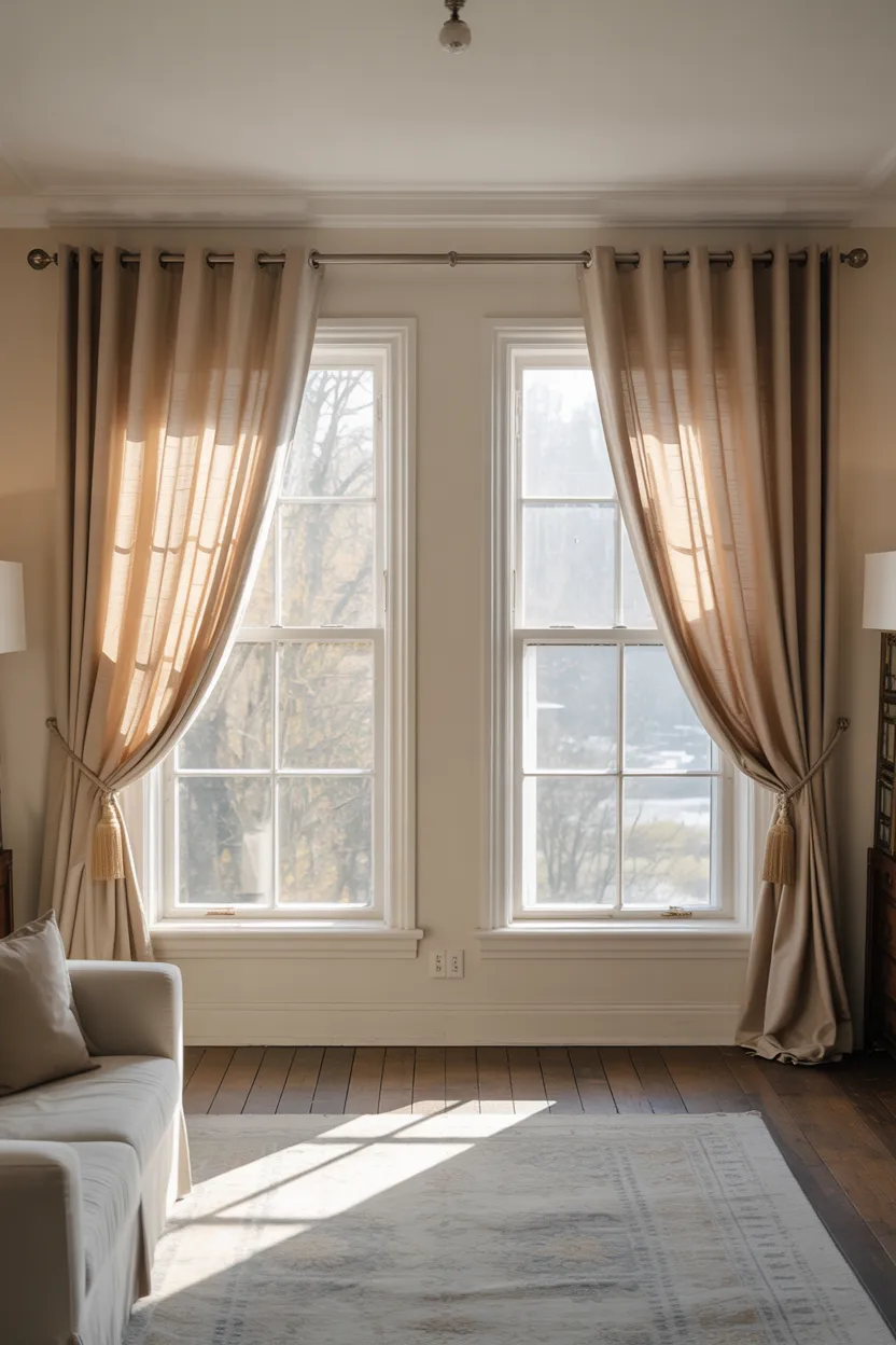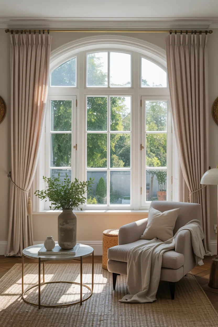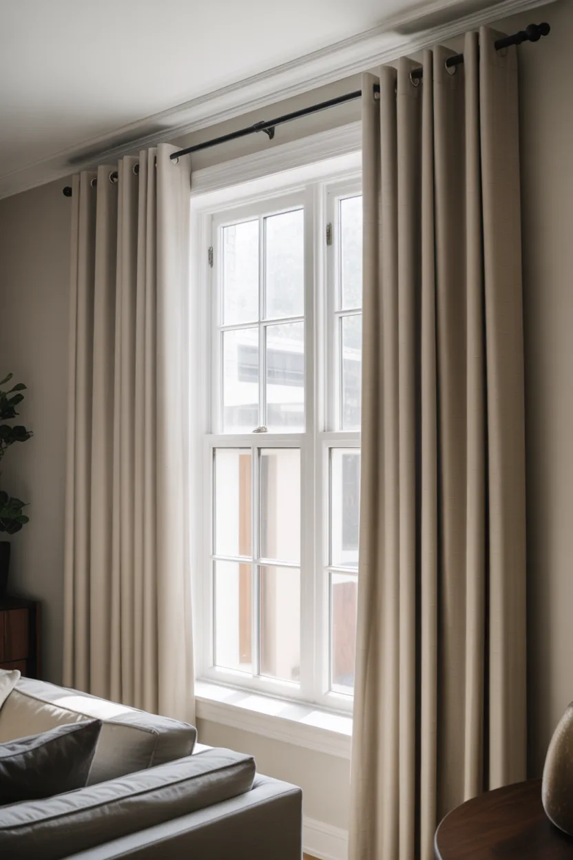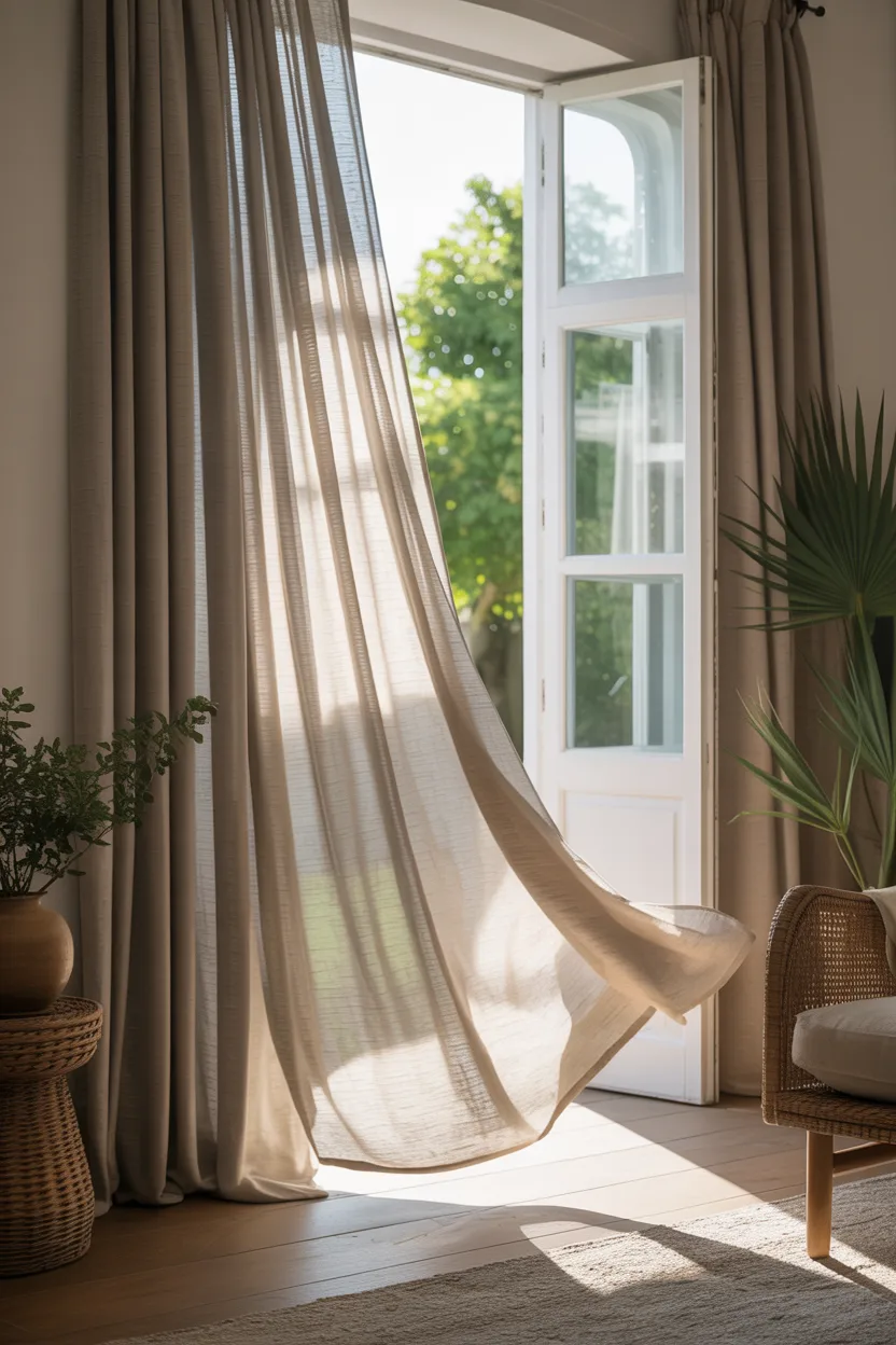 Neutral sheers can make windows feel taller in a very quiet, elegant way. They do not crowd the wall, they let light pass through, and they create a soft line from top to bottom. That airy look helps the whole room feel less boxed in.