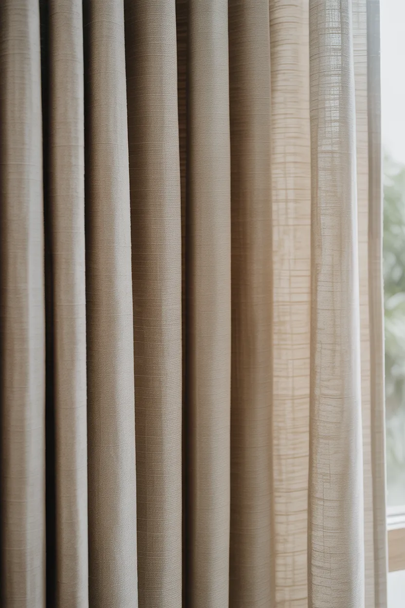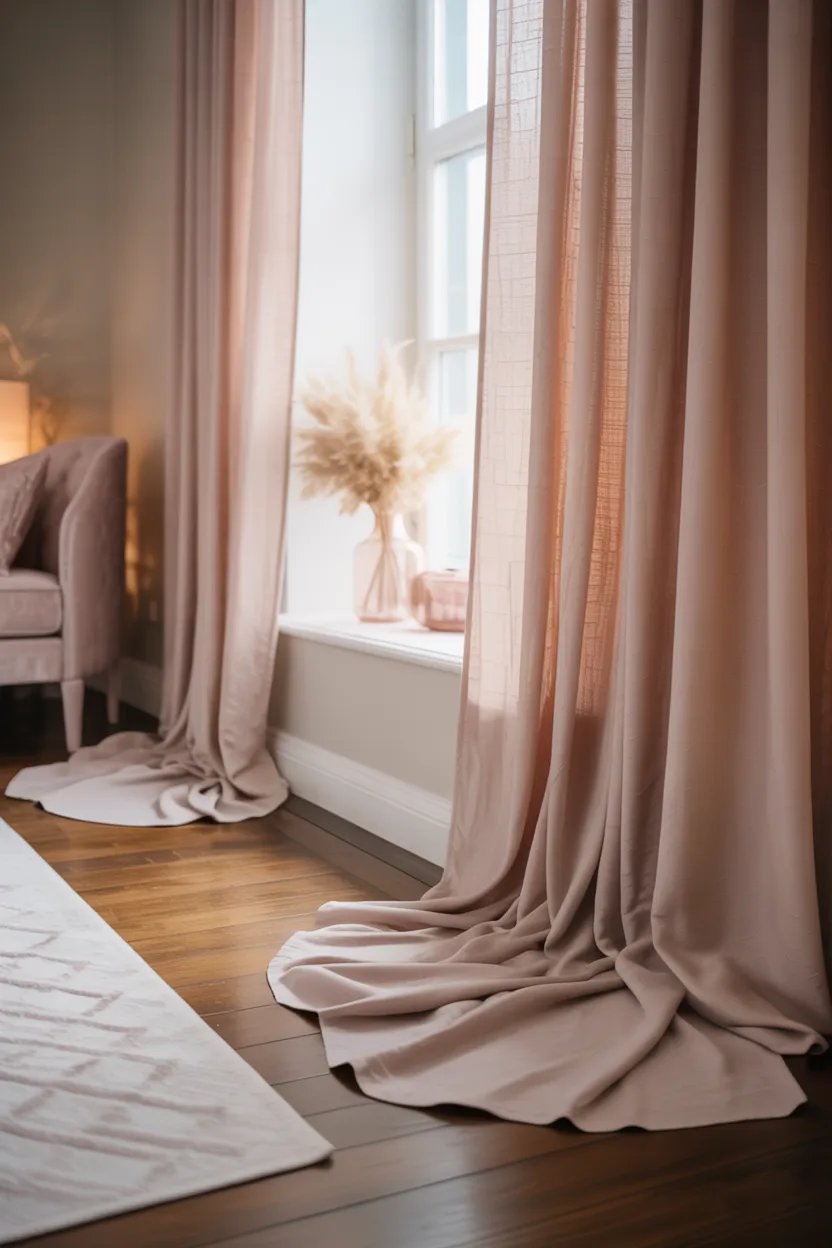 Heavy curtain fabric can drag a room down if the space already feels short. Thick velvet or overly lined panels can look rich, but they can also make the wall feel heavy and crowded. Lightweight fabrics help the curtains hang in a softer, more vertical way.