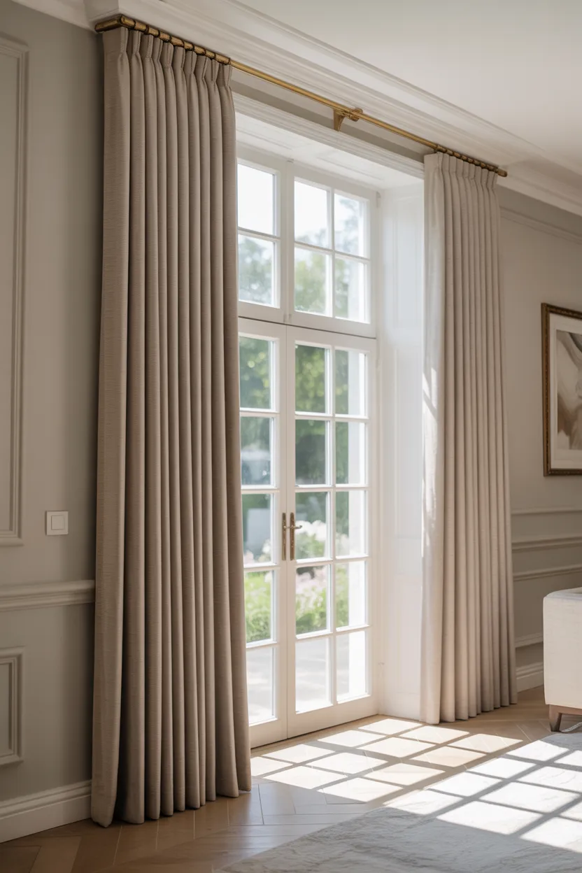 A double rod setup adds depth, softness, and flexibility. You can hang lightweight sheers behind full curtain panels, which gives the window a fuller and more finished look. That layered effect also strengthens the vertical presence of the window area.