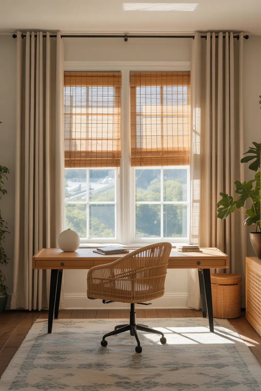 Bamboo shades with soft neutral panels