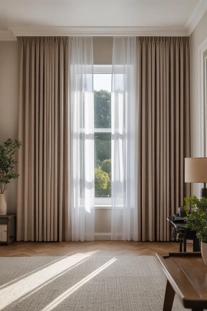 I especially like this in bedrooms and living rooms where you want privacy and softness during the day, then a little more coverage at night. The sheers keep the window looking light and open, while the outer curtains add structure.