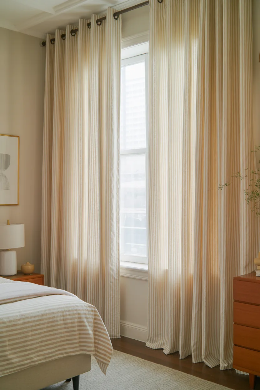 Vertical stripes have one job, and they do it well. They guide the eye upward, which naturally helps windows look taller. If you want to add pattern without losing that height effect, this is one of the smartest options.