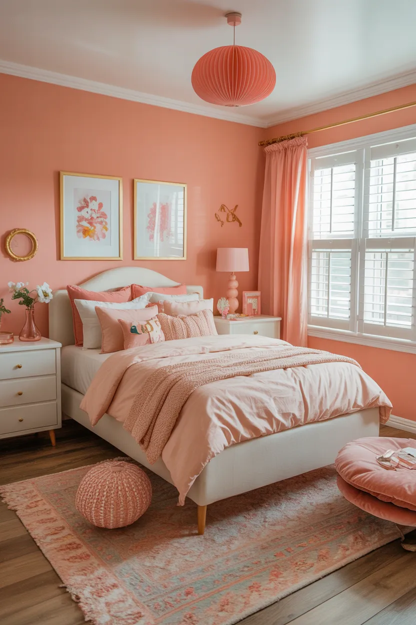 If you want a bedroom that feels cheerful and cute, peachy coral brings a lot of charm.