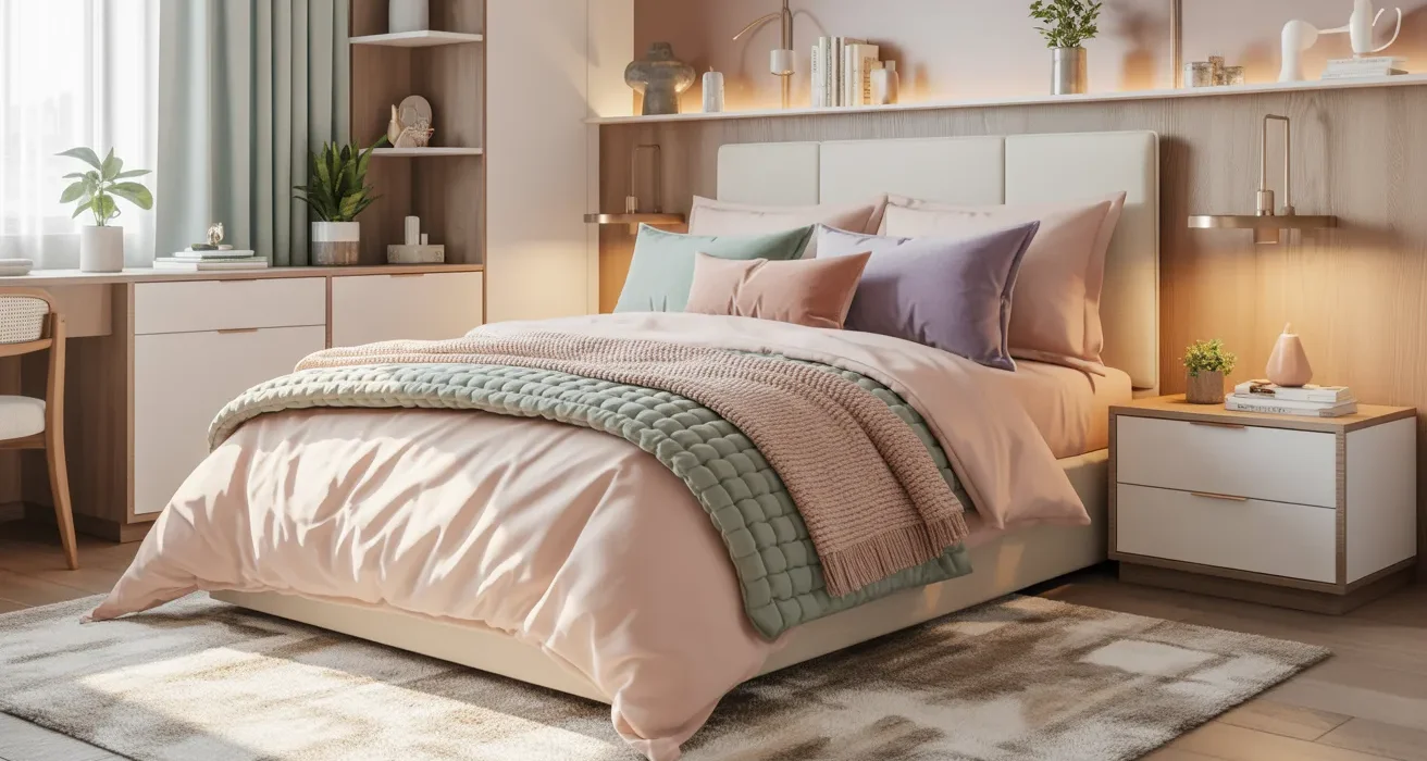 Bedding takes up a huge part of the room visually, so it matters more than people think. If your wall color is soft and muted, choose bedding that adds texture and gentle contrast. If the wall color is stronger, keep the bedding calmer so the room does not feel too busy.